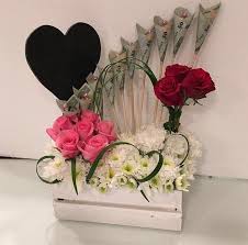 هناك الكثير من المحلات المتخصصة بتزيين الزهور وتغليف هدايا فلوس وهدايا أخرى متنوعة، يمكنك التوجه إلى أقرب محل زهور لتفصيل باقة جاهزة من النقود، مع بطاقة تهنئة.